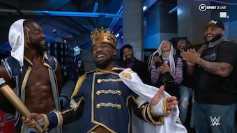 New King of the Ring Xavier Woods joined best friend and tag team partner Kofi Kingston in the ring for a special Knighting Ceremony. After declaring Kingston worthy of the honor and naming him "The Hand of the King," The Usos interrupted and came face-to-face with their longtime rivals.