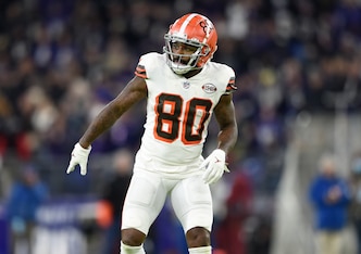 The five-time Pro Bowler is the best wideout on Cleveland's roster but could be trade bait in the 2022 offseason. The Browns have invested in young receivers Donovan Peoples-Jones, 22, and Anthony Schwartz, 21, and will have a financial decision to make regarding Landry.