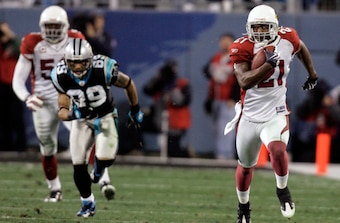 In the first half, the Panthers' quarterback lost a fumble and threw two interceptions that led to 17 Arizona points. It also didn't help that Carolina's defense couldn't contain Larry Fitzgerald, who caught a touchdown and recorded 151 of his 166 receiving yards by halftime.