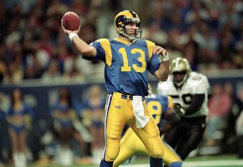 Undrafted out of Northern Iowa in 1994, he didn't make his NFL debut until the 1998 season, and by 1999, he was the MVP after throwing for 4,353 yards and 41 touchdowns as the signal-caller for the Greatest Show on Turf teams in St. Louis.