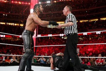 16 of 17The greatest surprise ending in WrestleMania history took place in 2015, when Seth Rollins rushed the ring in the middle of the WWE Championship match between Brock Lesnar and Roman Reigns and cashed in his Money in the Bank briefcase, turning the hotly anticipated singles bout into a Triple Threat bout.