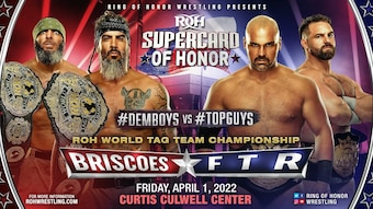 The ROH Tag Team Championships were up for grabs when Dem Boys, Jay and Mark Briscoe, took on Dax Harwood and Cash Wheeler of FTR.
