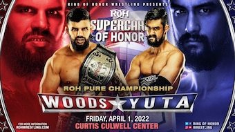 After hitting a series of elbow shots, Yuta rolled Woods over into a pin to score the victory and win the ROH Pure Championship. Woods shook his hand and raised Yuta's arm to help him celebrate his victory.