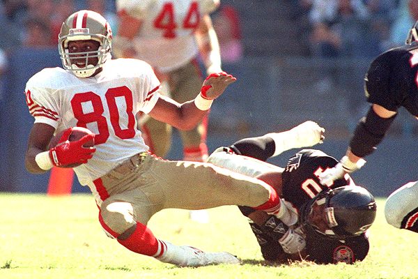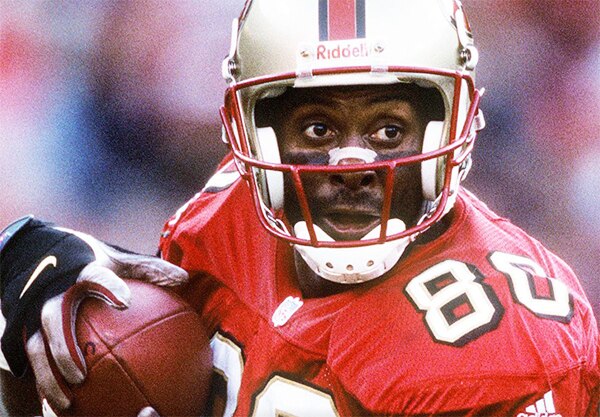 He set records which may never be eclipsed—even if the NFL expands to an 18-game regular season—including 1,549 receptions, 22,895 receiving yards, and 208 total touchdowns (197 receiving). He won three Super Bowls, making key contributions in all of them, and went to a fourth after leaving San Francisco for Oakland.
