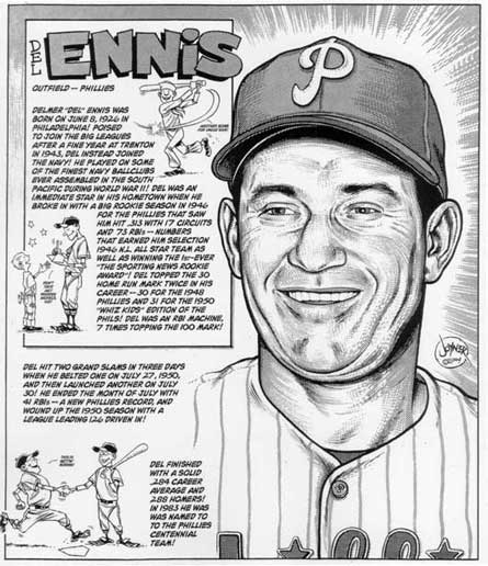 Three-time all-star Del Ennis was a great player during the not-so-great mid-40's to mid-50's decade of Phillies baseball. He put up seven seasons of at least 25 home runs and seven seasons of over 100 RBI (including 120 or more three times).