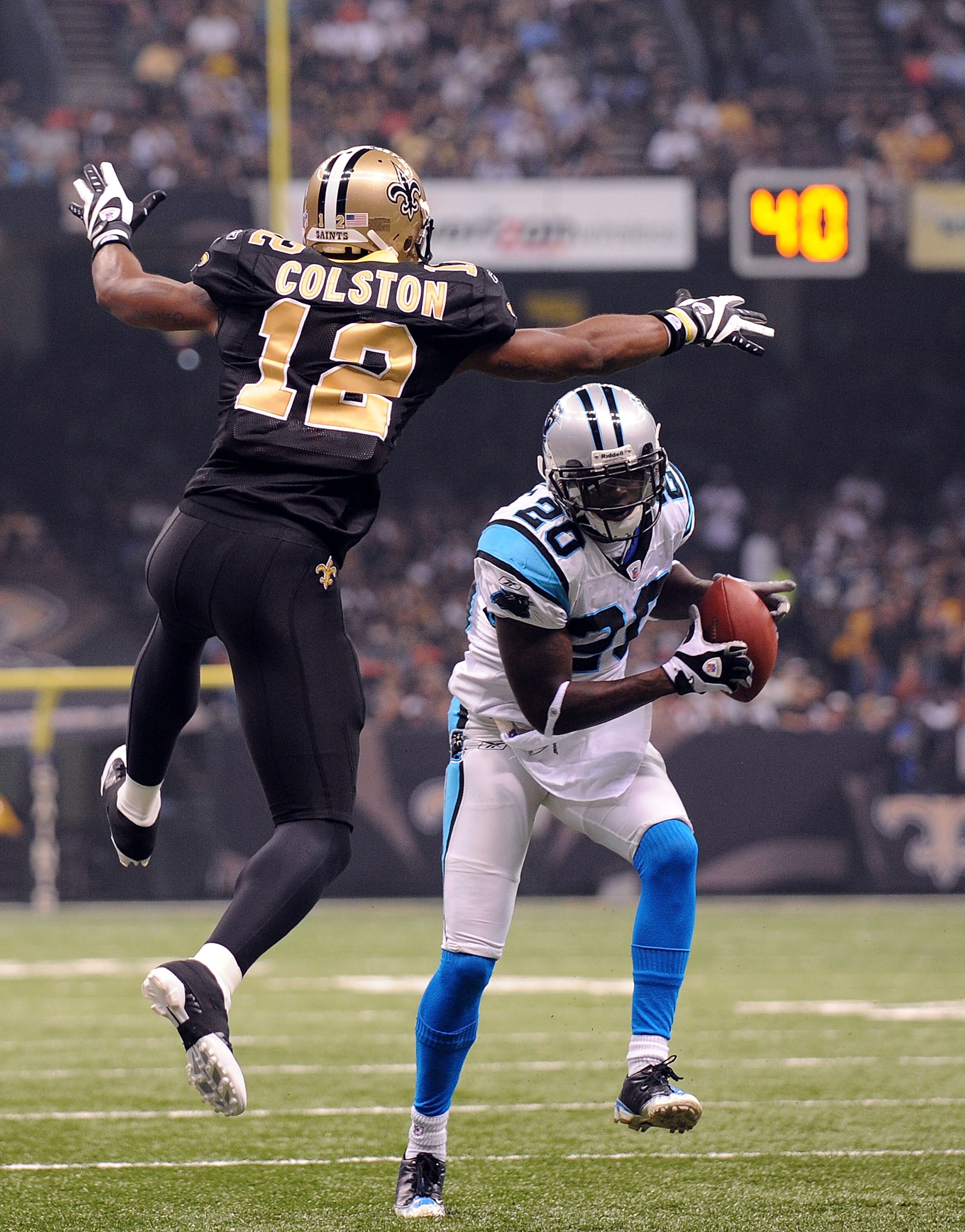 Marques Colston is a wide receiver for the Saints and on this play Gamble has the ball, clearly showing that Gamble made a play. much like he did last year in which he had 58 tackles and four interceptions.