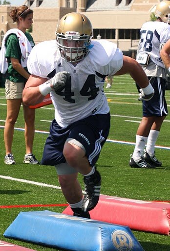 Calabrese, on the other hand, is someone who likes nothing more than to lay the boom on anyone who comes in his path. Coach Kelly has been quick to praise his toughness and the aggressive nature in which Carlo attacks the line. The downside is he's not the most fluid athlete and when he's on the field it may open a gaping hole for quick tight ends to exploit. Best case scenario is that his toughness overcomes his athletic shortcomings and he's the new-age Rocky Boiman. Worst case scenario is that he's the second coming of Toryan Smith.