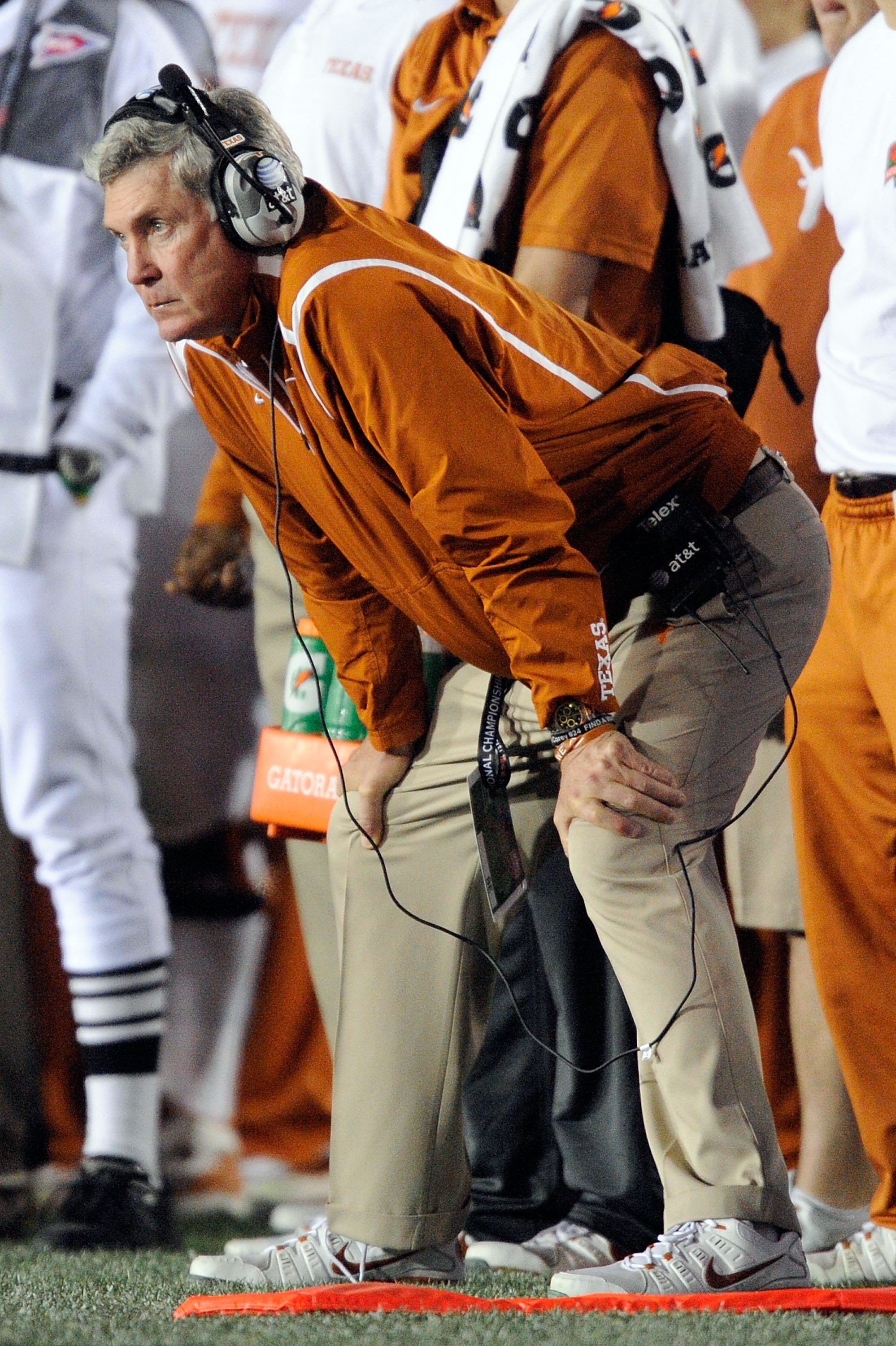 He prostitutes himself out across the airwaves for the University of Texas while bidding a loud "Adios amigo!" to his dignity.