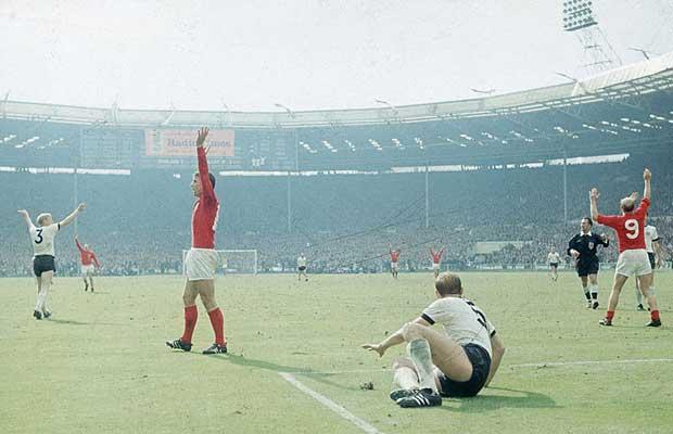 In extra time in the 1966 World Cup final, England were able to get an extremely controversial goal as Geoff Hurst's shot that hit the crossbar and bounced off the line.