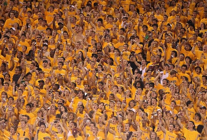 Sun Devil Stadium isn't particularly known for the noise of their stadium, but the student section is one of best in the country and really gets the blood flowing with great energy. Now if the capacity crowd of 73,000 was able to match the enthusiasm of the students, you'd really have something.