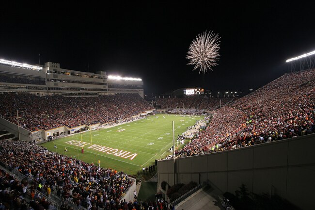 Lane Stadium isn't one of the biggest stadiums in the country, with a capacity of 66, 233, but that doesn't stop the fans from pouring in the noise with the best of them.