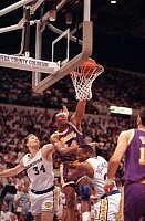Signed as a free agent in the summer of 1990, Sam Perkins spent two and a half seasons with the Lakers. He was a key member of the 1991 Finals team, averaging 17.7 ppg and 8.3 rpg in the 19-game postseason run. He also played a huge role in the Lakers’ lone victory in the series, hitting a 3-pointer with 14 seconds left to give the Lakers a 92-91 lead (the final score was 93-91).