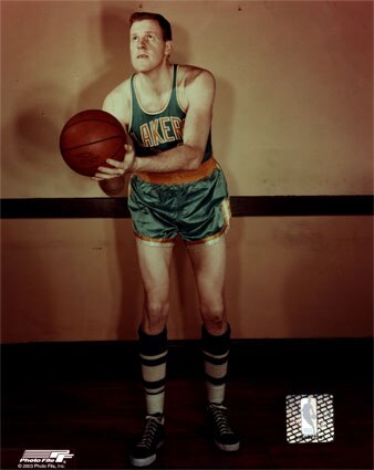 George Mikan scored 11,764 points in his career and retired as the league’s all-time leading scorer. He was inducted into the Basketball Hall of Fame in 1959.