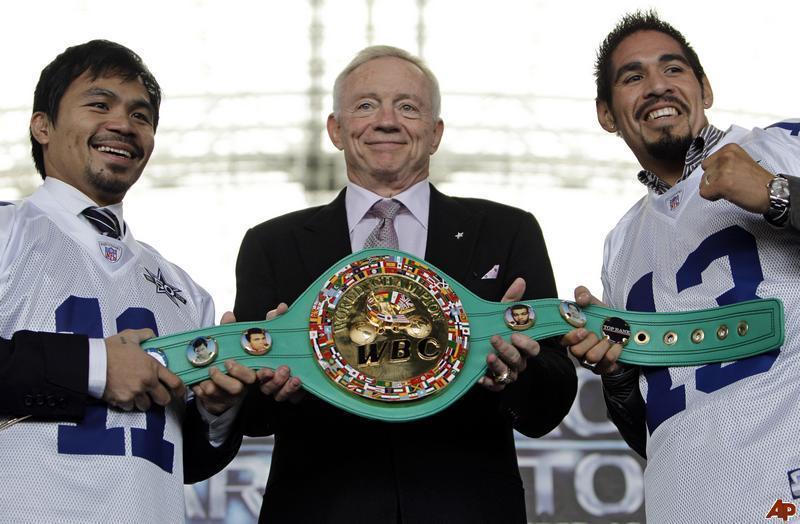 Cowboys owner Jerry Jones was on hand during the weigh-in, which makes sense given that the fight is going to take place in his gigantic stadium.