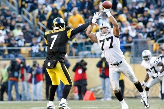 Pittsburgh Steeler left tackle Max Starks is out for the season with a neck injury. This is an invitation for Raider up and comer Matt Shaughnessy to have a breakout game.