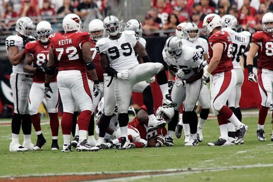 Ward's concussion is a big part of why the Steelers could quite up with the Patriot's high score. Improved Raider speedster Stanford Routt should match up well enough with Wallace to keep him from going crazy.