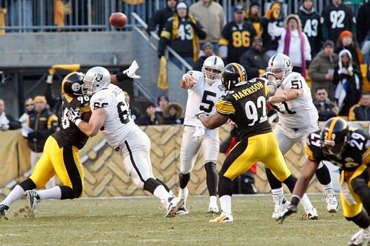 In the last few games, the Raider run defense has improved and moved up to No. 24 from No. 31. This is another area that will hurt the Steelers due to the injuries to Starks and to left guard Chris Kemoeatu.
