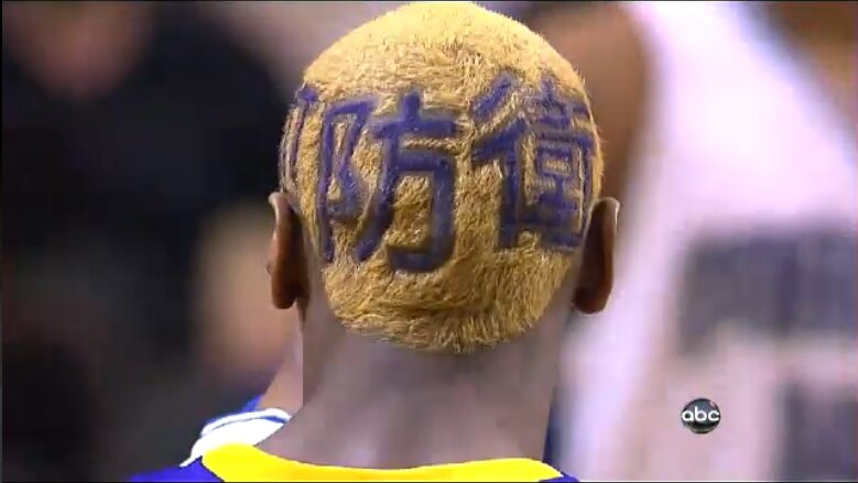 Ron Artest will do anything to psyche himself up. He will even go into the stands so watch out expensive ticket holders. Here we have the Lakers basket case doing the sanest thing he has ever done. He cut the Hebrew and Japanese characters meaning "defense" into his head. He did this because, well, why not?