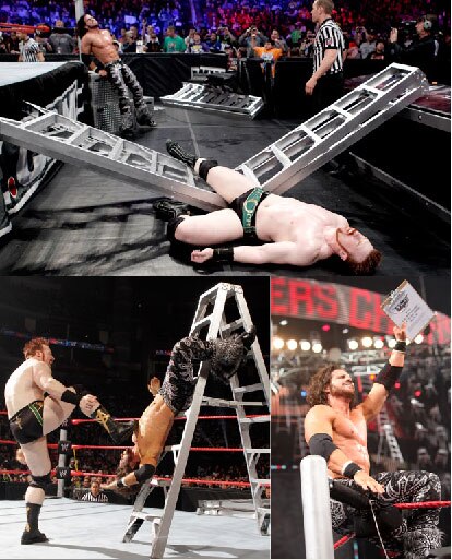 Each superstar used the ladder in any possible way to destroy his opponent and grab the hanged contract. Morrison even sold a knee injury pretty well.