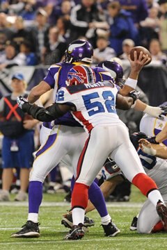 Arthur Moats, the guy that stopped Brett Favre's consecutive game start streak, continued his outstanding play today. Moats was credited with one and a half sacks for the game in addition to getting credit for two other QB hits. His pressure on the quarterback is something that was void in the Bills defense during the first six weeks.