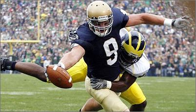 A quarterback's job isn't easy, especially for rookie quarterback Sam Bradford. Bradford needs extra help in getting the ball all the way down to the end zone. With Kyle Rudolph, Bradford may be able to do what his team needs, and that's score touchdowns. He is the only player to have played in every game during his freshman year at Notre Dame. Impressive!