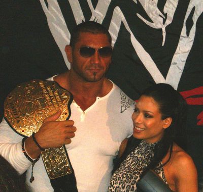 Batista briefly dated Kelly Kelly, before he found out the age difference was borderline incestuous as he was pretty much dating his daughter. Batista also dated Melina while Melina was on the outs with real life beau and WWE Superstar John Morrison.