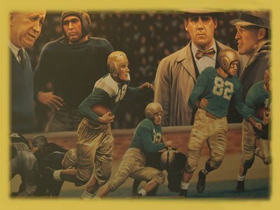 Gipp was the first consensus All-American at Notre Dame and racked up some of the most impressive stats in the history of the game. He played offense and defense, kicked and punted, and was not only the ideal football player, but the ideal 19th century American as well.