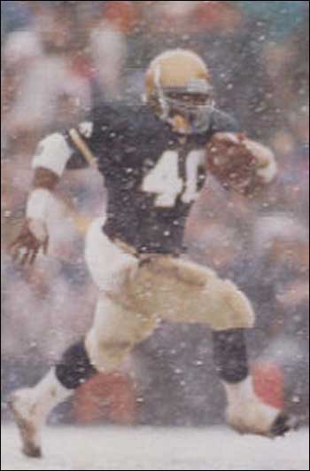 Helping Lou Holtz's campaign to bring the Irish to the top, Brown was the biggest threat on his teams for four straight years. His receiving and punt-returning skills made him one of the most electrifying players ever to play a college football game.
