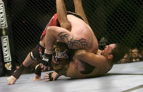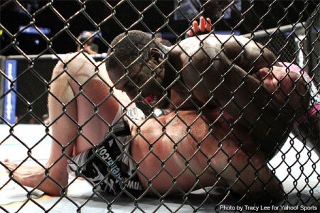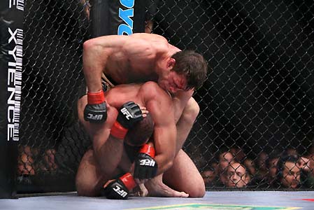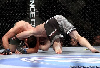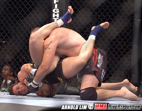 When McFedries started getting the better of him striking, Kampmann had to resort to taking the fight to the ground.
