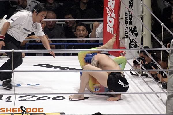 Rutten tried to stay calm, but Shamrock snatched up his leg and pulled back for a devastating kneebar.