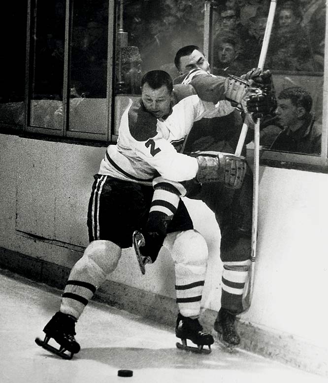 He won his first of three consecutive Norris Trophies in 1963, and scored an astounding 14 goals and 59 points in the 1964-65 season, which was the record for defensemen in the pre-expansion era.