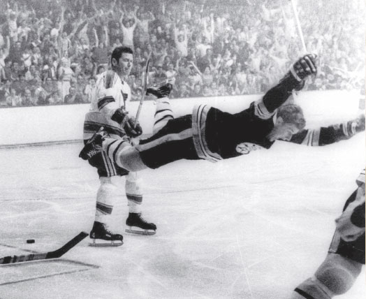 Starting the next season, despite playing in only 46 games, Orr won his first of eight consecutive Norris Trophies, the most of any defenseman. His offensive game began to blossom in his third season, when he scored 21 goals and 64 points, but nobody could have expected what would happen the following season. Orr potted 33 goals and an unbelievable 120 points, winning the Art Ross Trophy(the only defenseman to do so) as well as his first of three consecutive Hart Trophies. He also led the Bruins to the Stanley Cup that season, scoring the game winning goal in overtime of game four against the St. Louis Blues, which is shown in the most well known photo in hockey history. He also won the Conn Smythe Trophy.