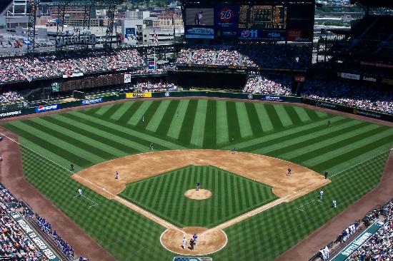 The field has a dirt strip between home and the pitchers mound, an ode to classic parks but a rarity today, as they are one of just two parks with that feature (the other, Chase Field in Arizona).