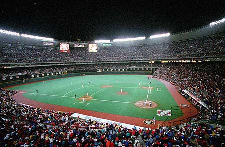 It is widely regarded as baseball's worst stadium, and the overhead cat walks may be the most asinine feature of any park ever, as they come into play all the time and serve absolutely no purpose.