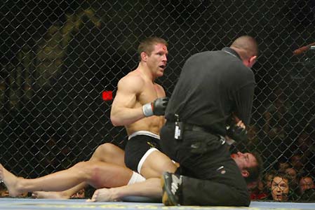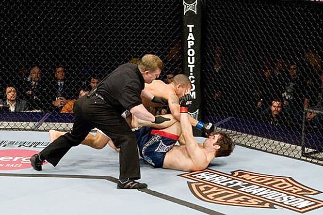 In this fight between Mac Danzig and Matt Wiman, referee Yves Lavigne clearly made a wrong call when he stopped the bout 1:45 into round number one.