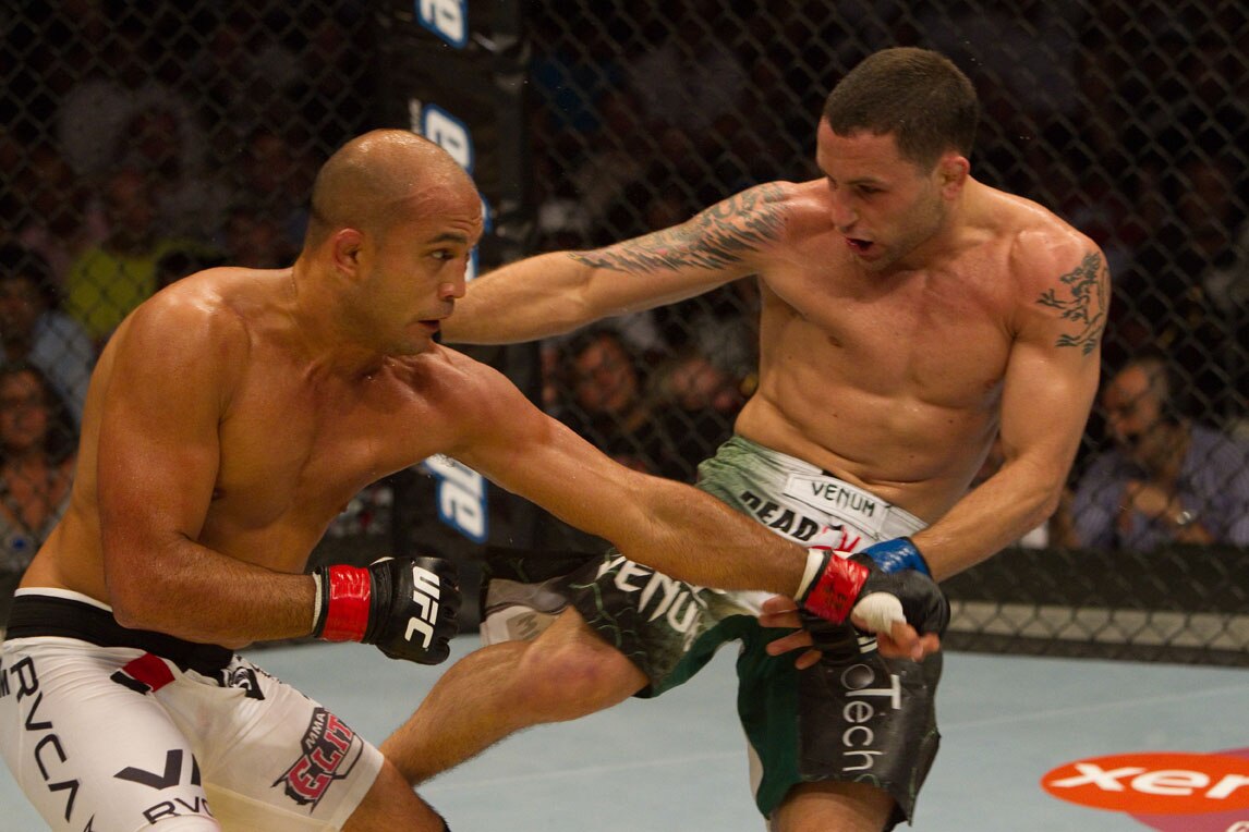 In his first four fights with the WEC, Brown defeated Urijah Faber twice and defended his featherweight title two times.