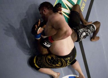Roy's gut benefits him, to an extent, when it comes to grappling. In the clinch and especially from top position on the ground, his extra weight wears on his opponent. All that weight centered in one area gives Nelson a really solid base and makes him hard to move, especially if he's on top of you. He showed in his time on the Ultimate fighter how hard it is to out from under him. Kimbo Slice, who was probably stronger than Nelson, could not get out from under him after Nelson trapped him in a top position crucifix.