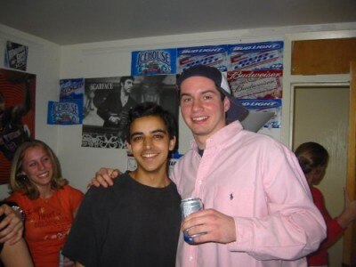 Crushing a cold one in the dorm room before heading out to the party.