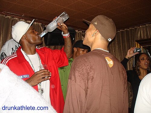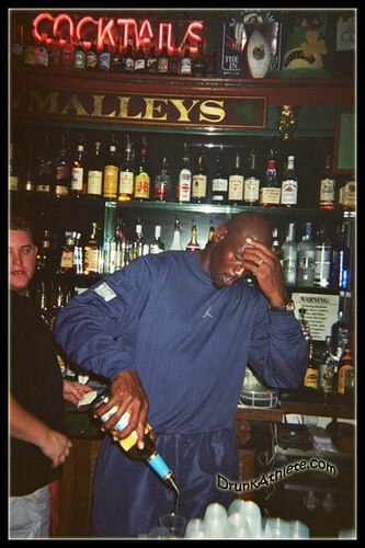 Pouring shots while rocking the Jumpman's logo for the crowd to clearly see.