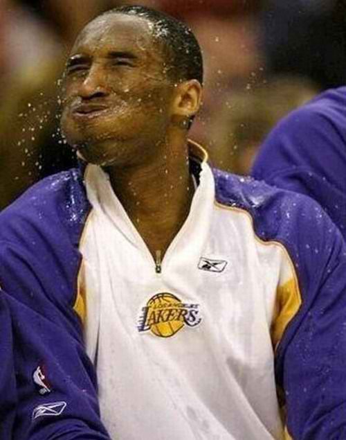 Kobe was feeling all sorts of sassy when he let the water fly from his cheeks.