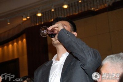 There's nothing wrong with Yao drinking a little vino, but doesn't he know the etiquette associated with it?