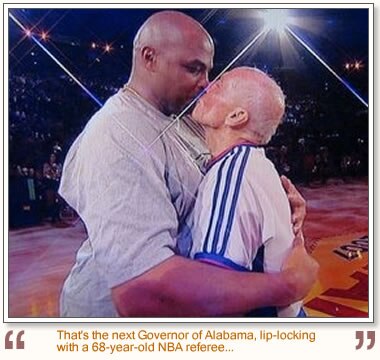 Charles Barkley gave Dickie B. a smooch front and center at the All-Star Game.