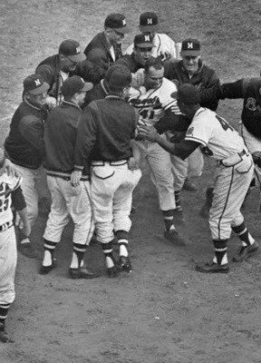 The first batter of the inning was hit by a pitch then sacrificed over. That was followed by an RBI double from Johnny Logan, as the Braves tied things up. The damage was not done, however, as the next batter was Hall of Famer Eddie Mathews, and he launched a home run to deep right field to give the Braves the win and bail out Spahn.