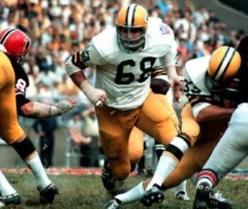 He became a starter at right guard as a rookie and played 11 seasons in Titletown, winning five championships and five All-Pro selections despite undergoing 22 surgeries throughout his career.
