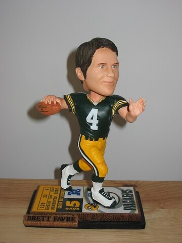 Here we have a very good bobblehead. It looks somewhat like the real Brett Favre, and his body is in a very realistic quarterback pose.