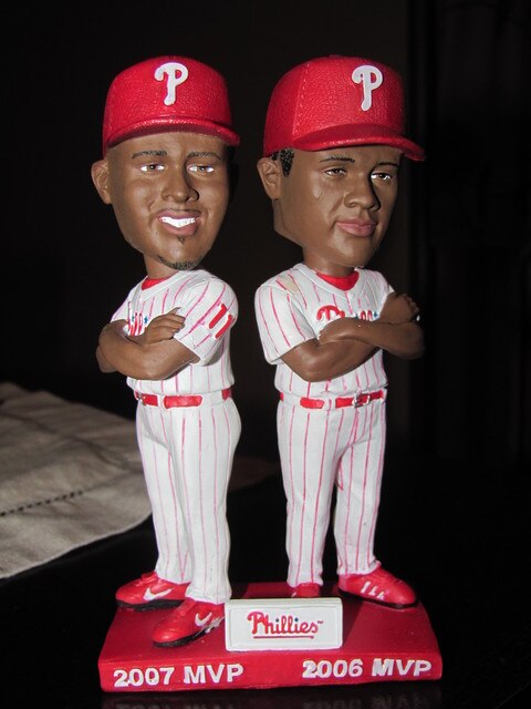 First, Ryan Howard is 6'4", while Jimmy Rollins is 5'8", but they appear here to be the same height.
