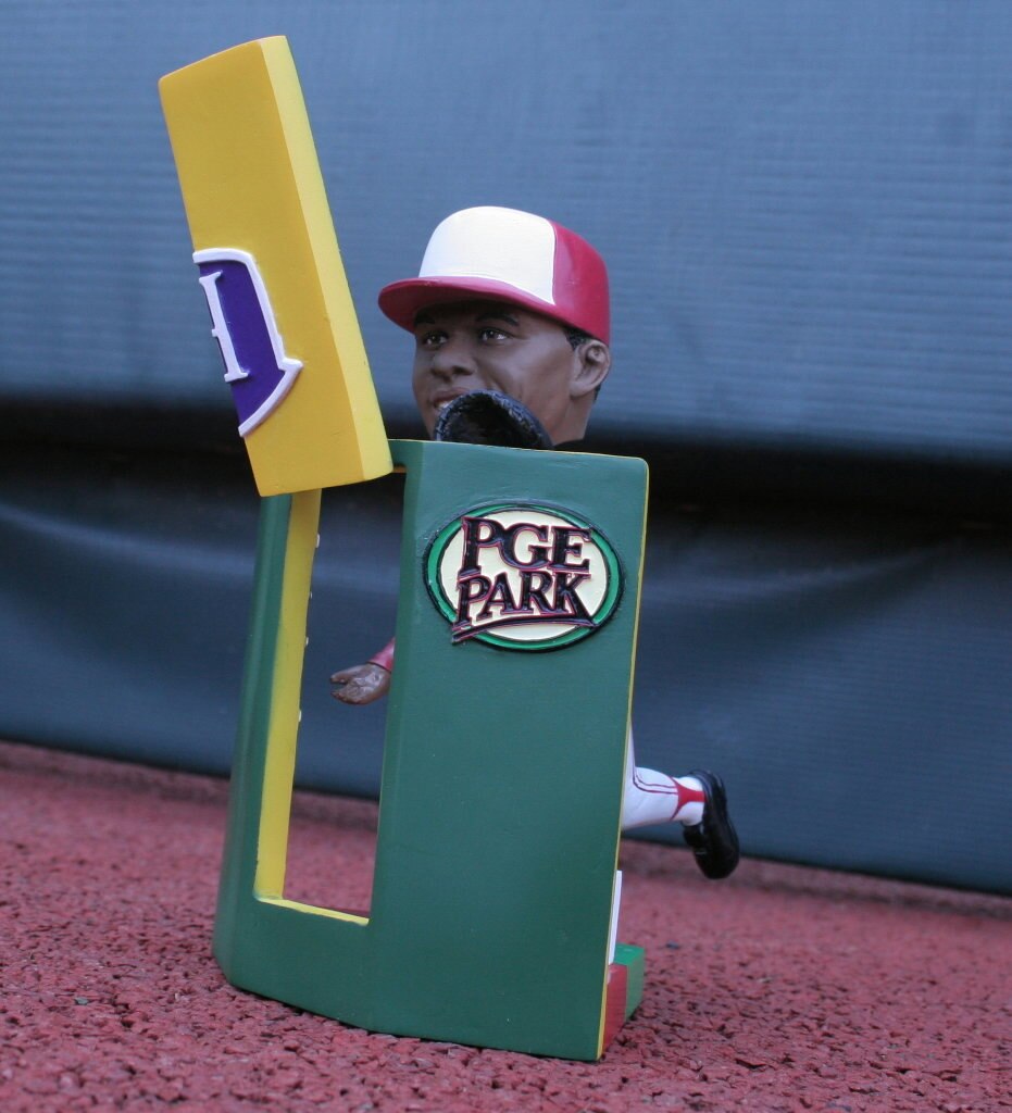 This is a great bobblehead whose lack of realism you need to ignore. As in, the fence did not bust before Rodney McCray crashed through it. Nevertheless, an awesome play to make a bobblehead out of, and a truly original bobblehead overall.