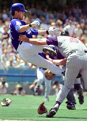 I'm still debating whether or not this was actually an instance of a guy charging the mound, but since it involved a batter (Chan Ho Park) charging and attacking a pitcher (Tim Belcher), I think it's awesome enough to make the list.