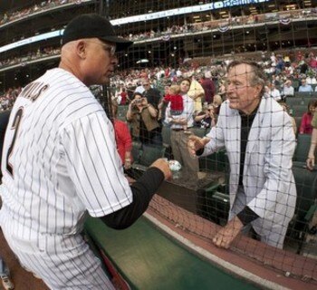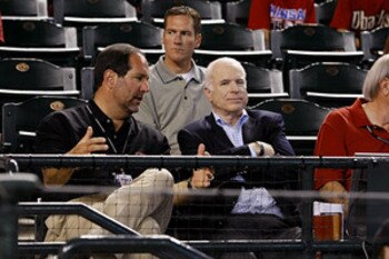 I didn't want to put John McCain here. I really didn't. I scoured the Internet for some famous Diamondbacks fans, and came up pretty much empty-handed. Sure, there were a couple of fans that I could have put here, like Alice Cooper and Don Imus, but those guys are fans in name only. The person I really wanted to put here was Jennie Finch, but her fandom changes with the destination of husband Casey Daigle.