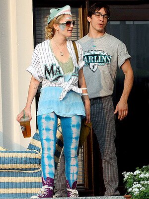 So with that in mind, I had zero expectations when I started my quest for celebrity Marlins fans, and was pleasantly surprised to find this gem. To the left, you see Drew Barrymore and Justin Long making their way to the ballpark. They're both celebrities, and they're both wearing Marlins gear in an odd style, so it's good enough for me.